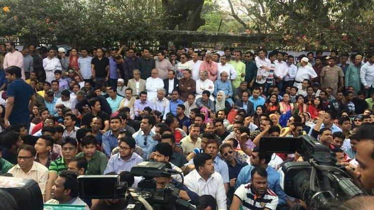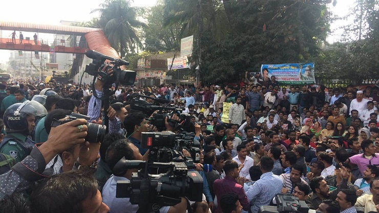 অনশনে যোগ দিতে সকাল ১০টার আগ থেকেই প্রেসক্লাবের সামনে জড়ো হতে থাকেন বিএনপি ও ২০ দলীয় জোটের নেতাকর্মীরা।